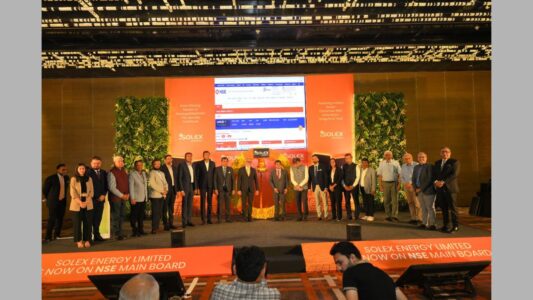 સોલેક્સ એનર્જી લિમિટેડ – એનએસઇ મેઈન બોર્ડ પર સ્થાનાંતરણની ઉજવણી માટે સુરતમાં બેલ વાગાવ્યું