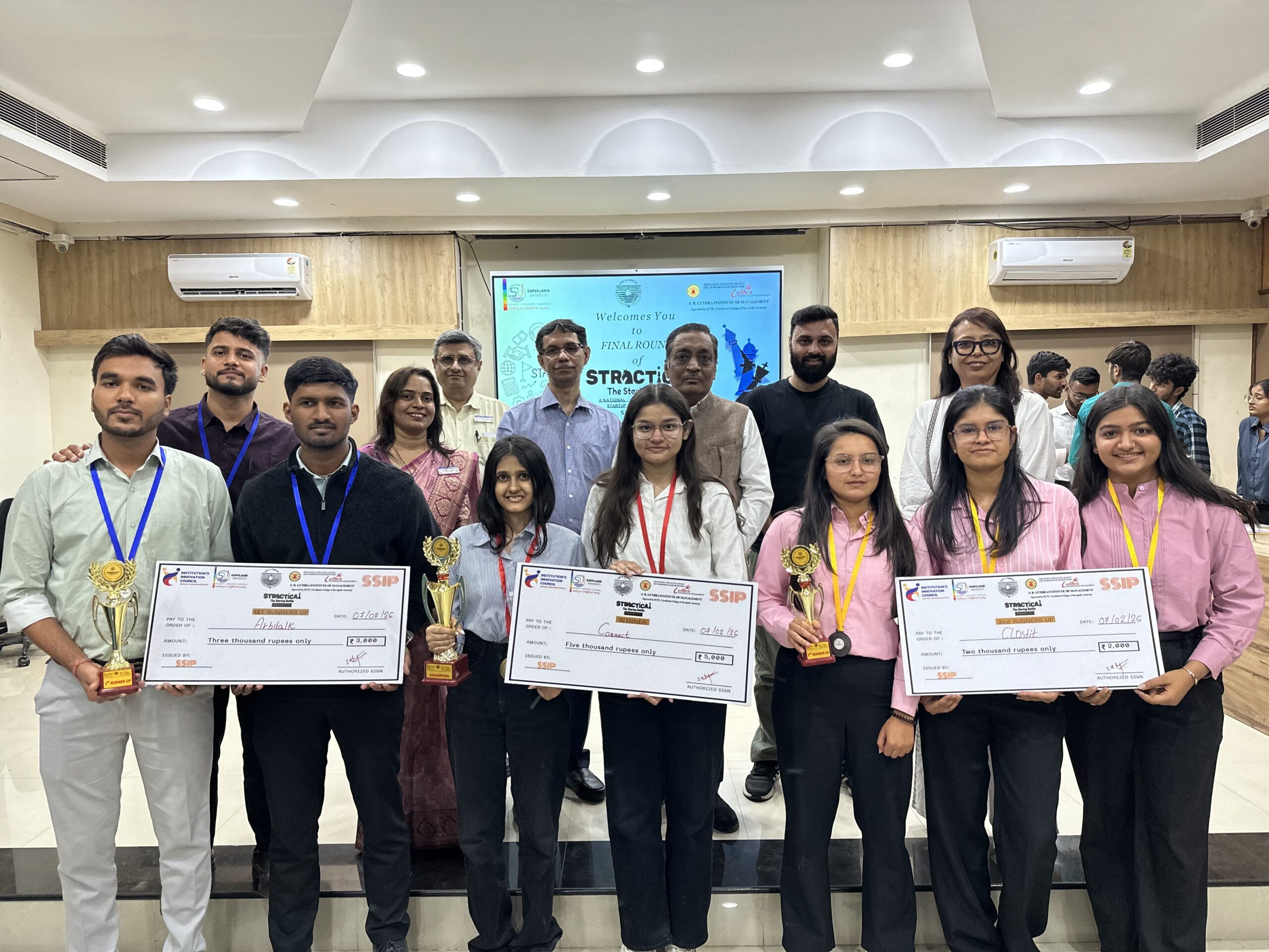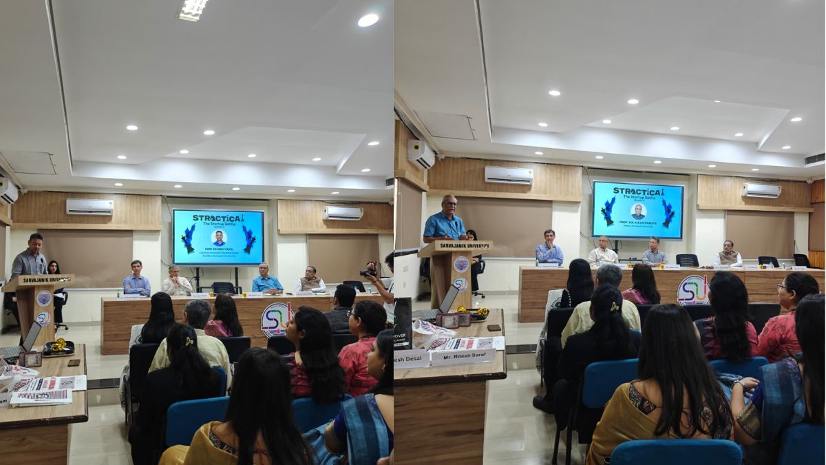 સાર્વજનિક એજ્યુકેશન સોસાયટી સંચાલિત અને સાર્વજનિક યુનિવર્સિટીની ઘટક સંસ્થા એસ. આર. લુથરા ઈન્સ્ટિટ્યૂટ ઓફ મેનેજમેન્ટ દ્વારા સતત અગિયારમી વખત રાષ્ટ્રીય કક્ષાની ઇન્ટરકોલેજ સ્ટ્રેકટીકલ-ધ સ્ટાર્ટઅપ બેટલ સ્પર્ધાનું તા. ૦૭ /૦૨ /૨૦૨૬ ના રોજ આયોજન કરવામાં આવ્યું હતું. આ સ્પર્ધાના ફાઈનલ રાઉન્ડમાં નિર્ણાયક તરીકે સરાઓગી લીગલ & IPR સર્વિસીસ ના સ્થાપક ડૉ. અનિલ સરાઓગી હાજર રહ્યા હતા.